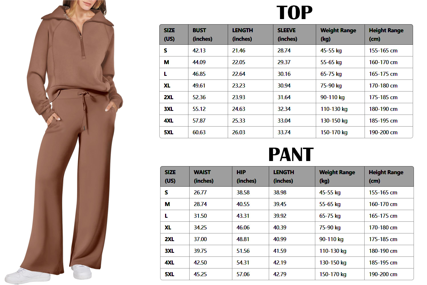 🔥Letzter Tag des Ausverkaufs!🛒Damen 2-teilige Outfits Lässige Revers-Halbzipper-Sweatshirts und weite Hosen Trainingsanzug-Sets🔥NUR 49,99 $🔥