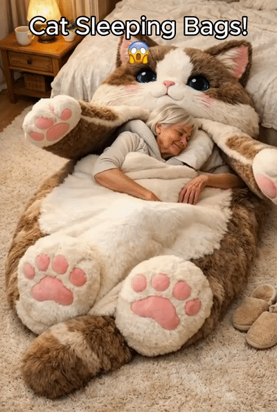 Schlüpfen Sie in den Flauschigen Katzen-Schlafsack und fühlen Sie sich sofort umarmt, warm und sicher – wie ein gemütliches Schnurren, in dem Sie schlafen können 😴💗