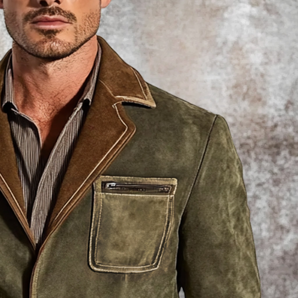 Herren Vintage Wildleder Mehrfachtaschen Farbblock Wendekragen Outdoor Jacke