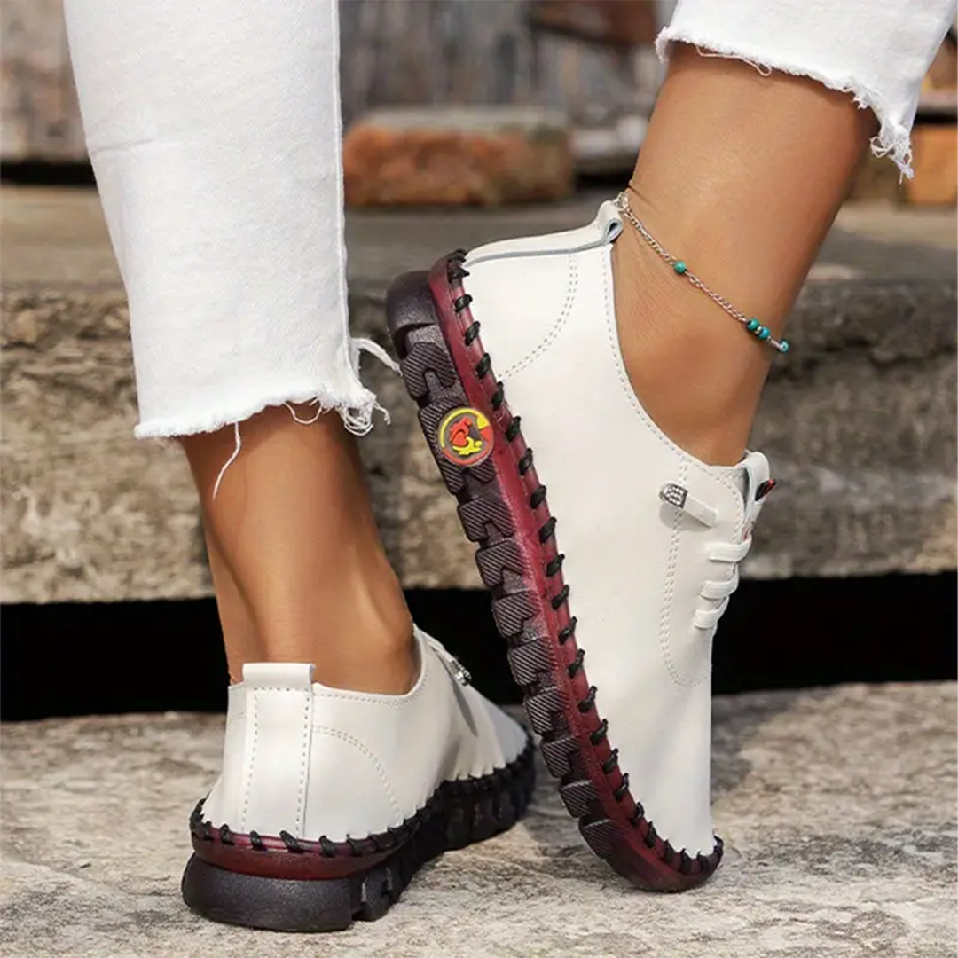 Mit einer breiten runden Zehenpartie und einem elastischen Rist bieten unsere Schuhe Freiheit und einen bequemen Sitz, was sie zur perfekten Wahl für Ihren Alltag macht.