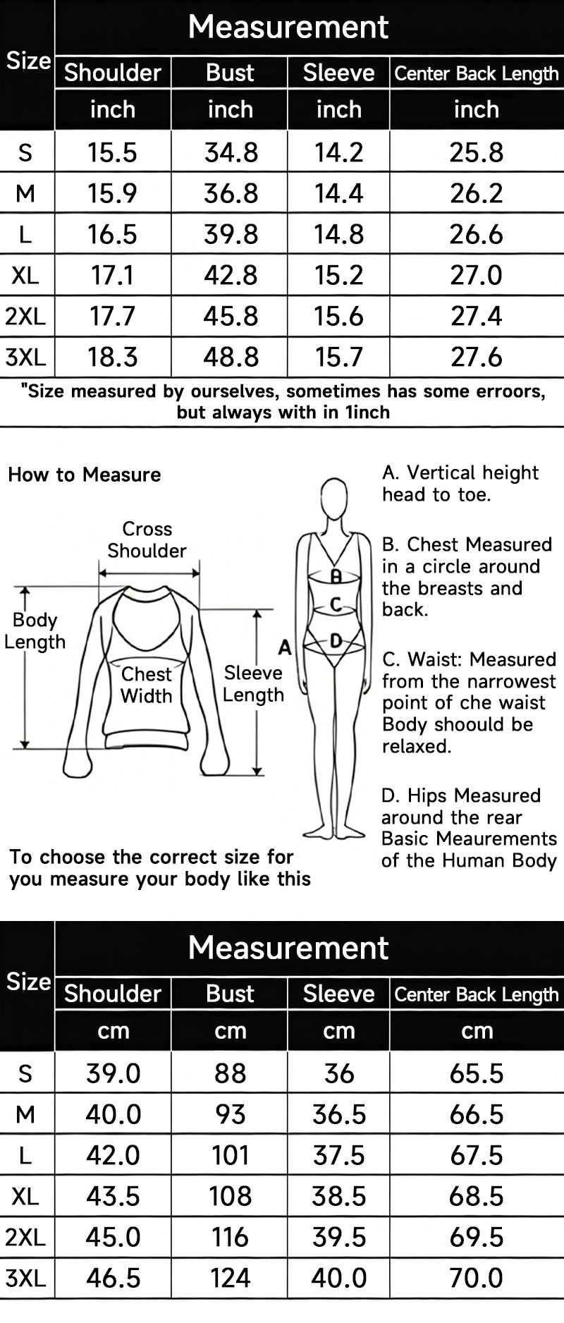 Es kann einen Unterschied von 2-3% aufgrund manueller Messung geben. Bitte überprüfen Sie die Größentabelle sorgfältig, bevor Sie den Artikel kaufen.
