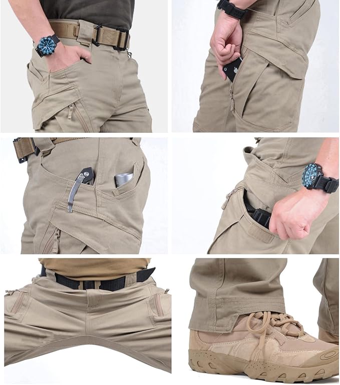 - Tactical Pockets: Equipped with 9 functional pockets, including 2 front pockets, 2 back pockets, and 4 expandable cargo pockets for carrying tools and gear.