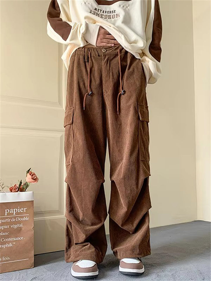 Men's Corduroy Lace Up Multi-Pocket Baggy Cargo Pants$44.20 USD$95.00 USD