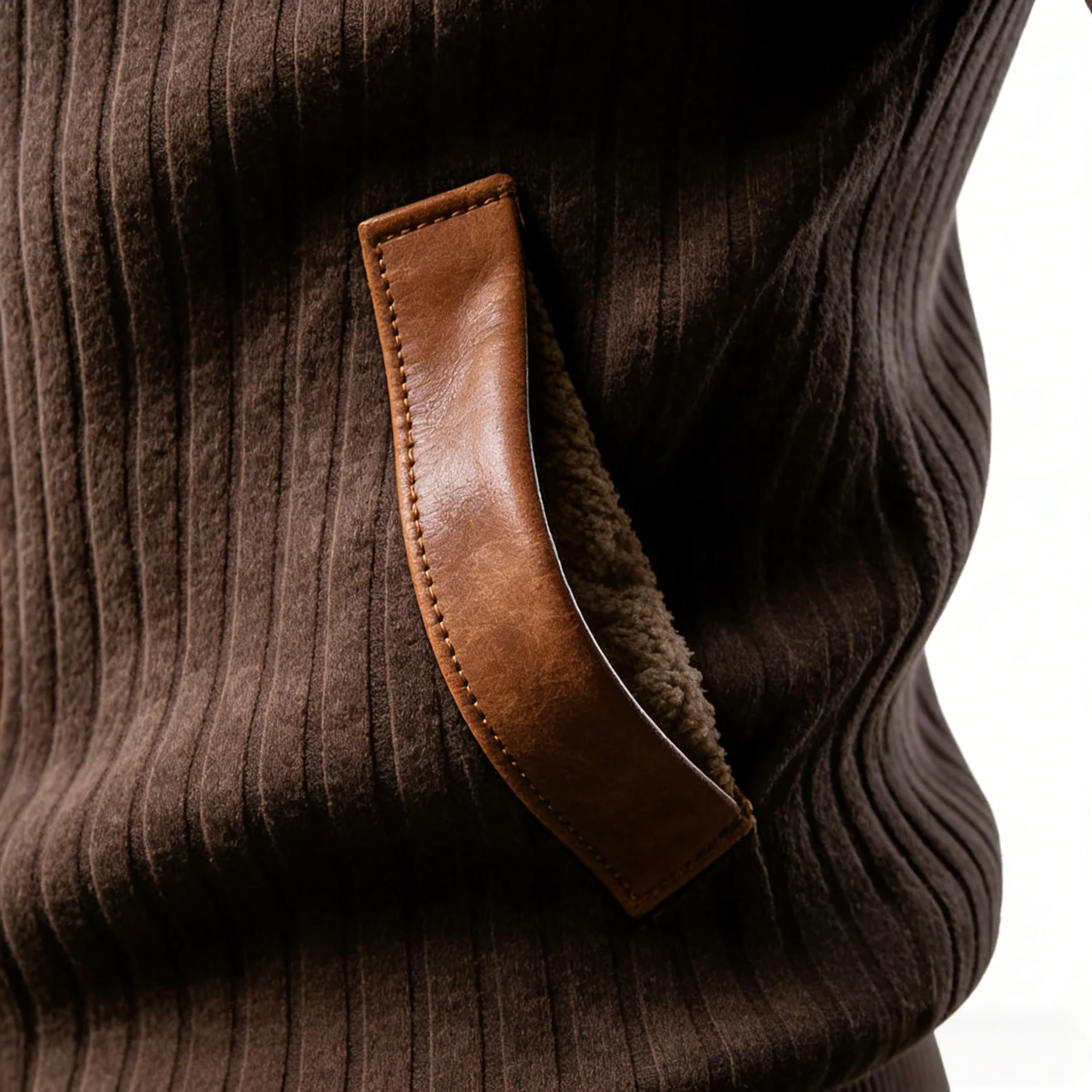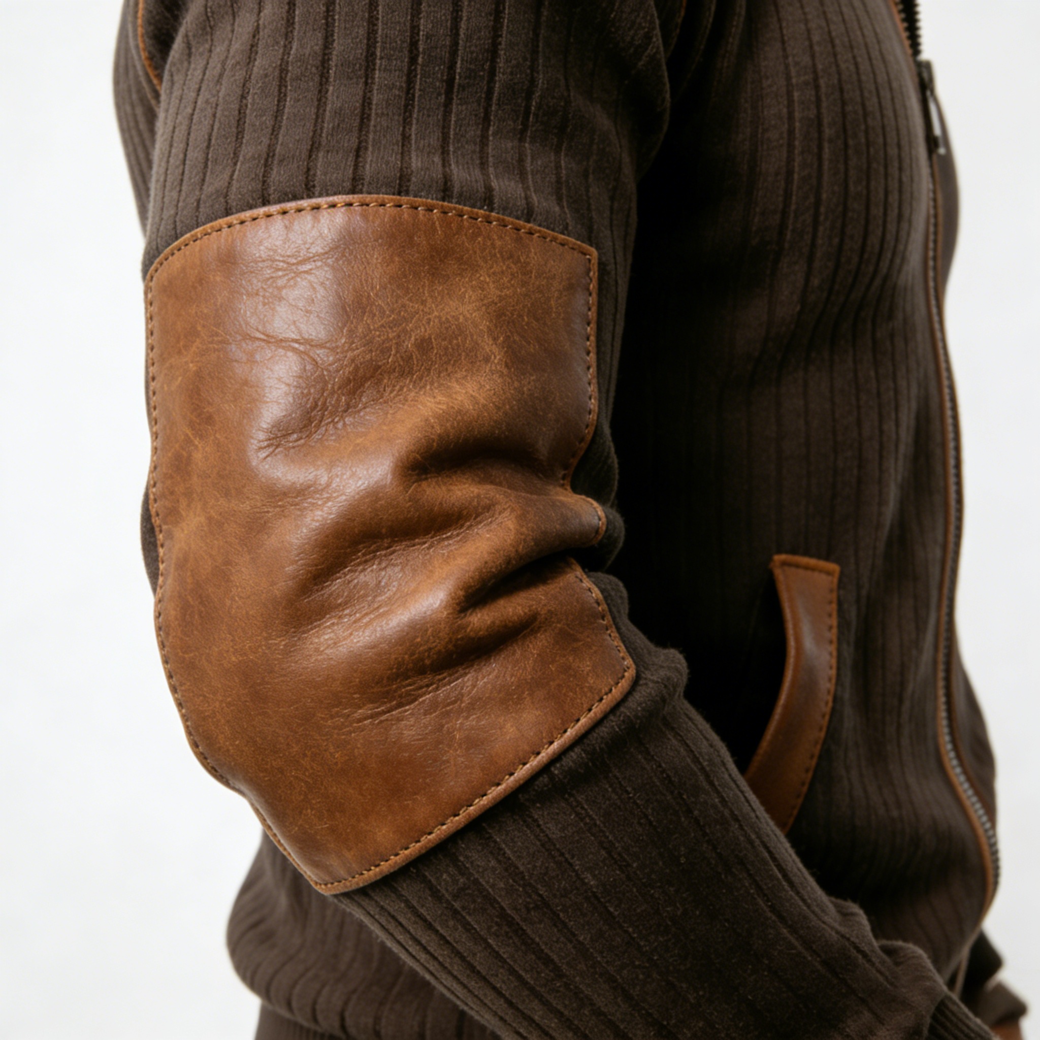 A classic ribbed texture paired with leather-look accents creates a refined, masculine aesthetic that never goes out of style.