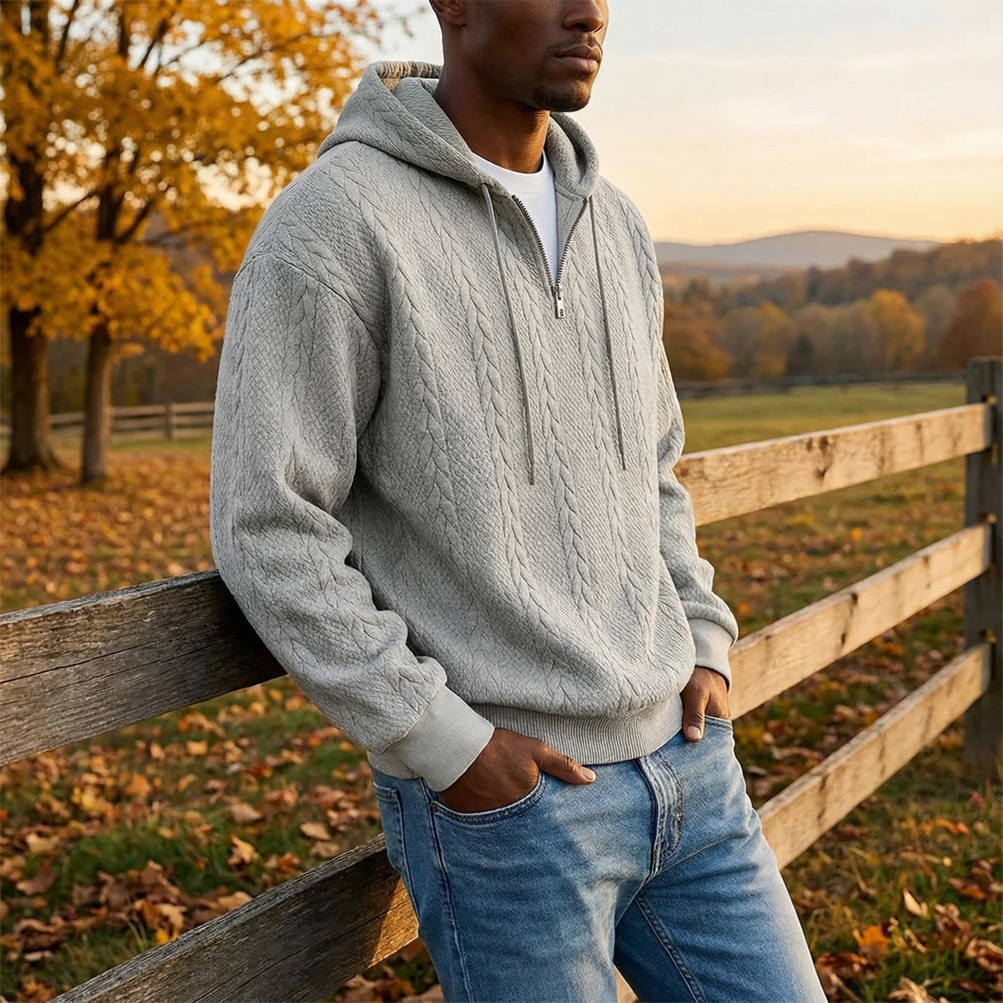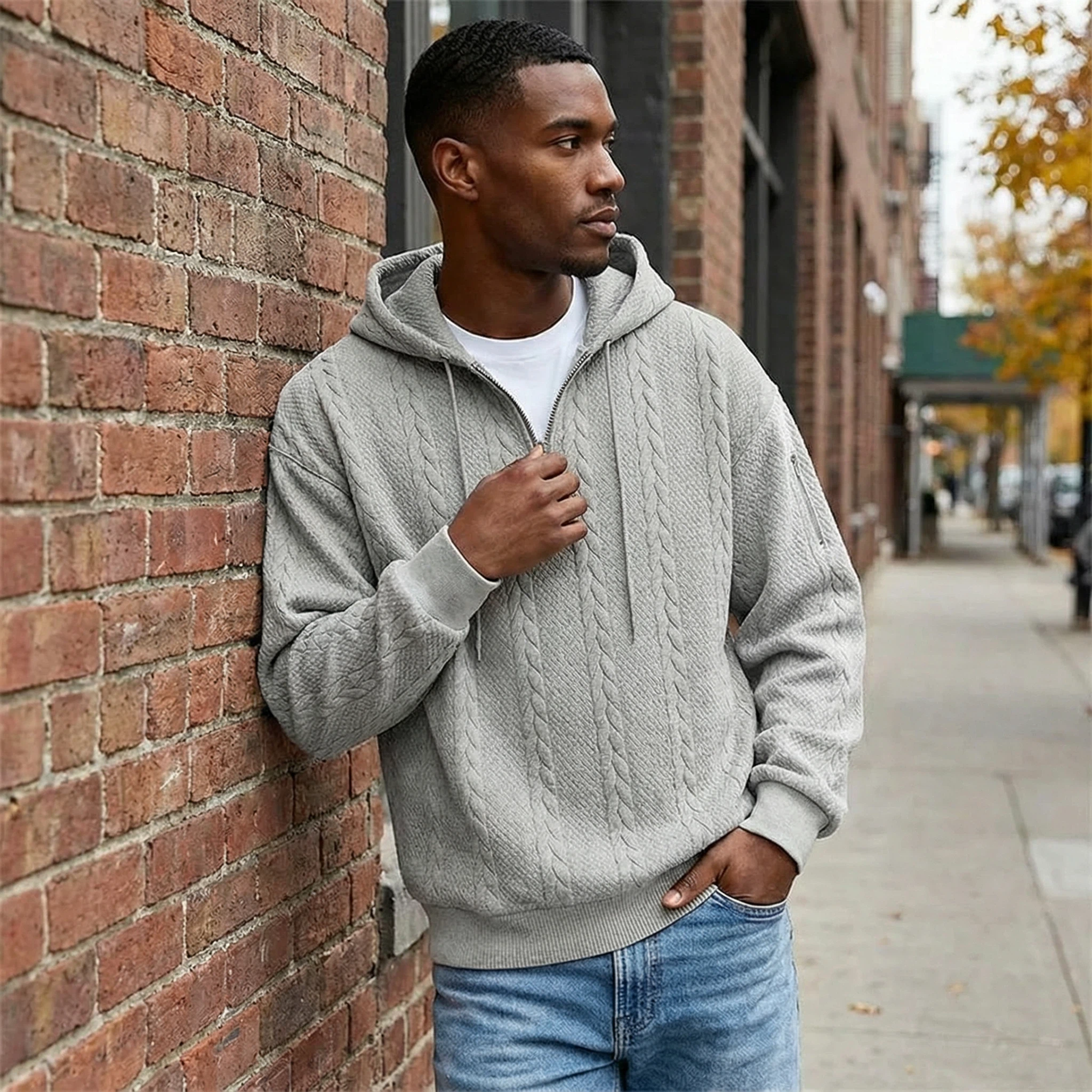This half-zip hoodie blends soft texture, relaxed comfort, and everyday versatility into one easy layer. Designed for men who want to feel comfortable without looking sloppy, it’s the kind of piece you’ll wear more often than you expect.
