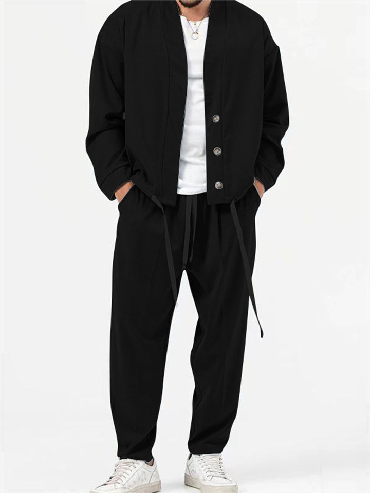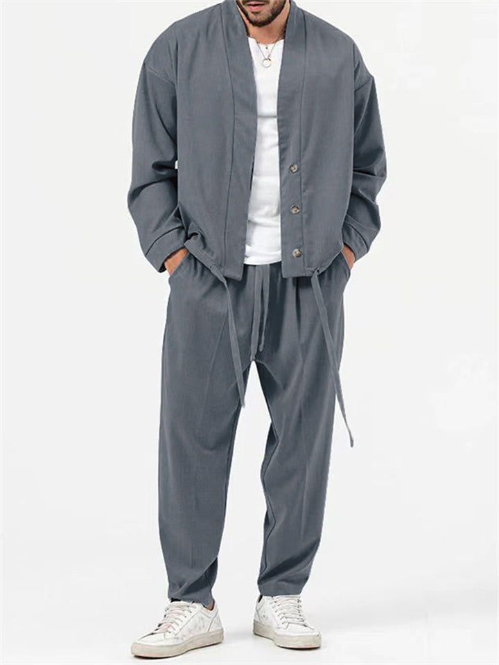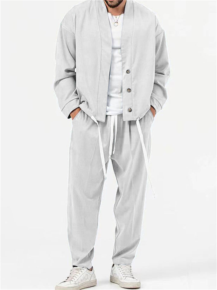 Men's Simple Oversized Drawstring Hem Shirt + Baggy Pants