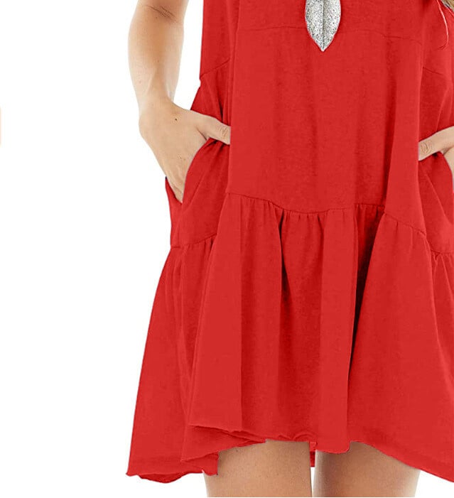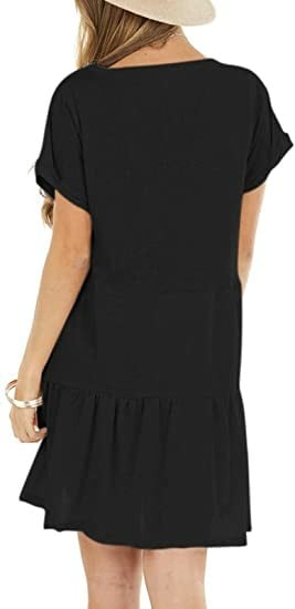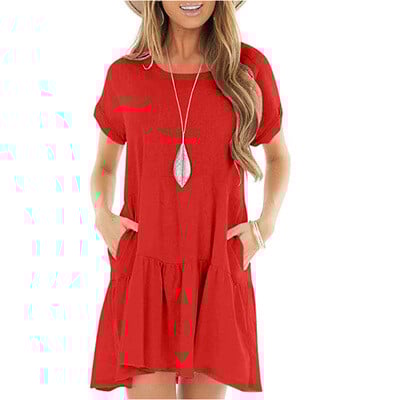 🎥 Name: Round neck short sleeve large hem mid-length dress